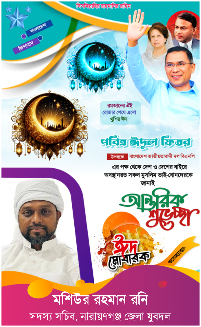 প্রেসবাংলা ২৪. কম: পবিত্র ঈদুল ফিতর উপলক্ষে নারায়ণগঞ্জসহ দেশ-বিদেশের সকল মুসলিম উম্মাহ এবং বাংলাদেশ জাতীয়তাবাদী দল (বিএনপি)-এর সর্বস্তরের নেতা-কর্মীদের আন্তরিক শুভেচ্ছা ও ঈদ মোবারক জানিয়েছেন নারায়ণগঞ্জ জেলা যুবদলের সদস্য সচিব … Read More