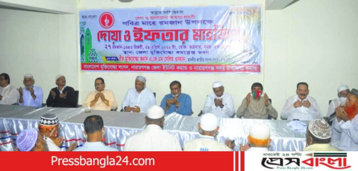প্রেসবাংলা ২৪. কম: বাংলাদেশ মুক্তিযোদ্ধা সংসদ নারায়ণগঞ্জ জেলা ইউনিট কমান্ড এর ইফতার মাহফিল অনুষ্ঠিত হয়েছে।