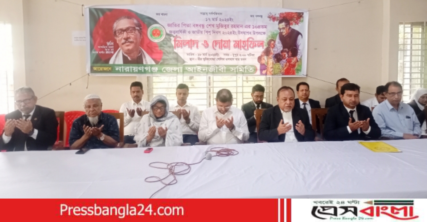 প্রেসবাংলা ২৪. কম: বঙ্গবন্ধু শেখ মুজিবুর রহমানের ১০৪ তম জন্মবার্ষিকী ও জাতীয় শিশু দিবস উদযাপন উপলক্ষ্যে মিলাদ ও দোয়া মাহফিল অনুষ্ঠিত হয়েছে।